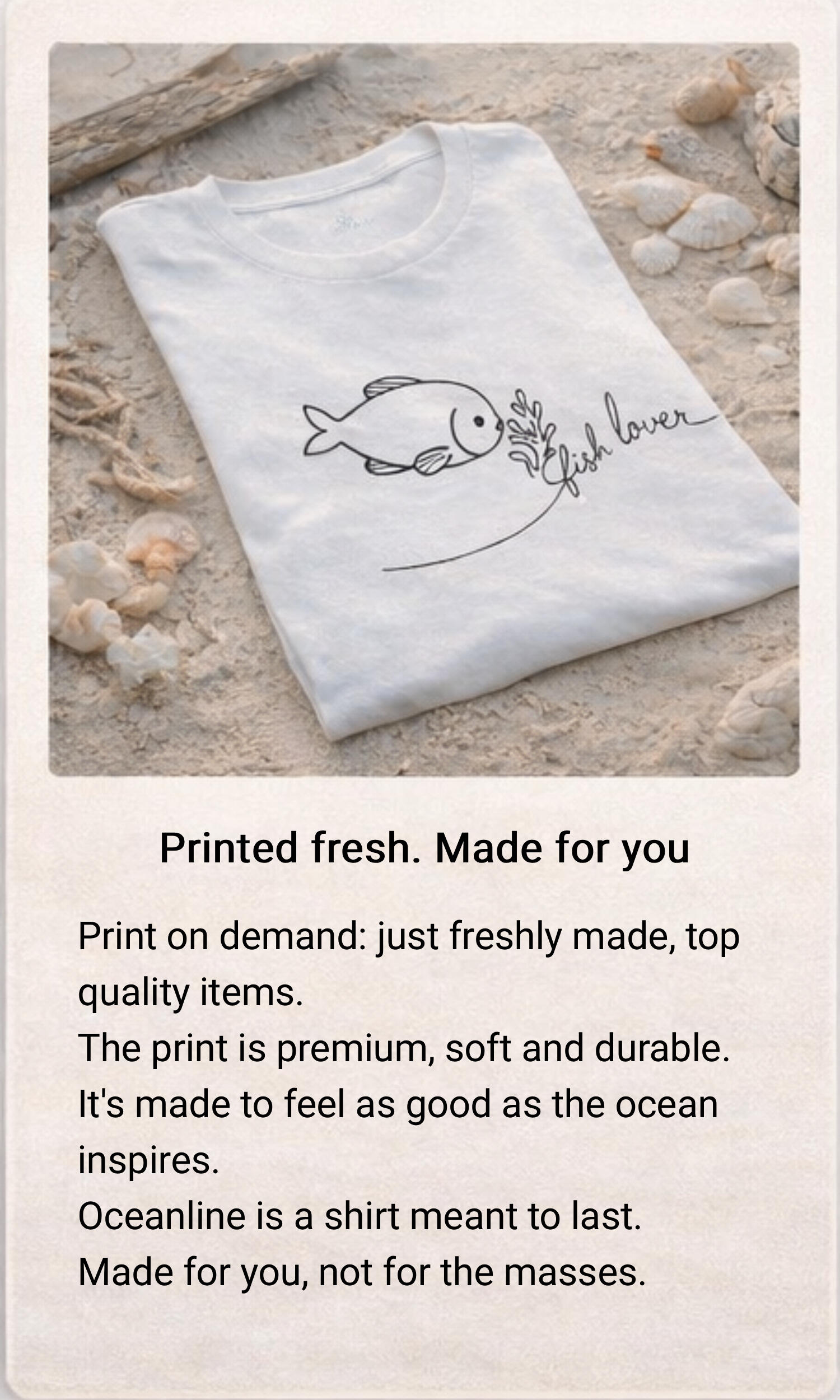 Each t-shirt i s made only when it's ordered, keeping everything simple, clean and intentional.The ocean teaches clarity.
