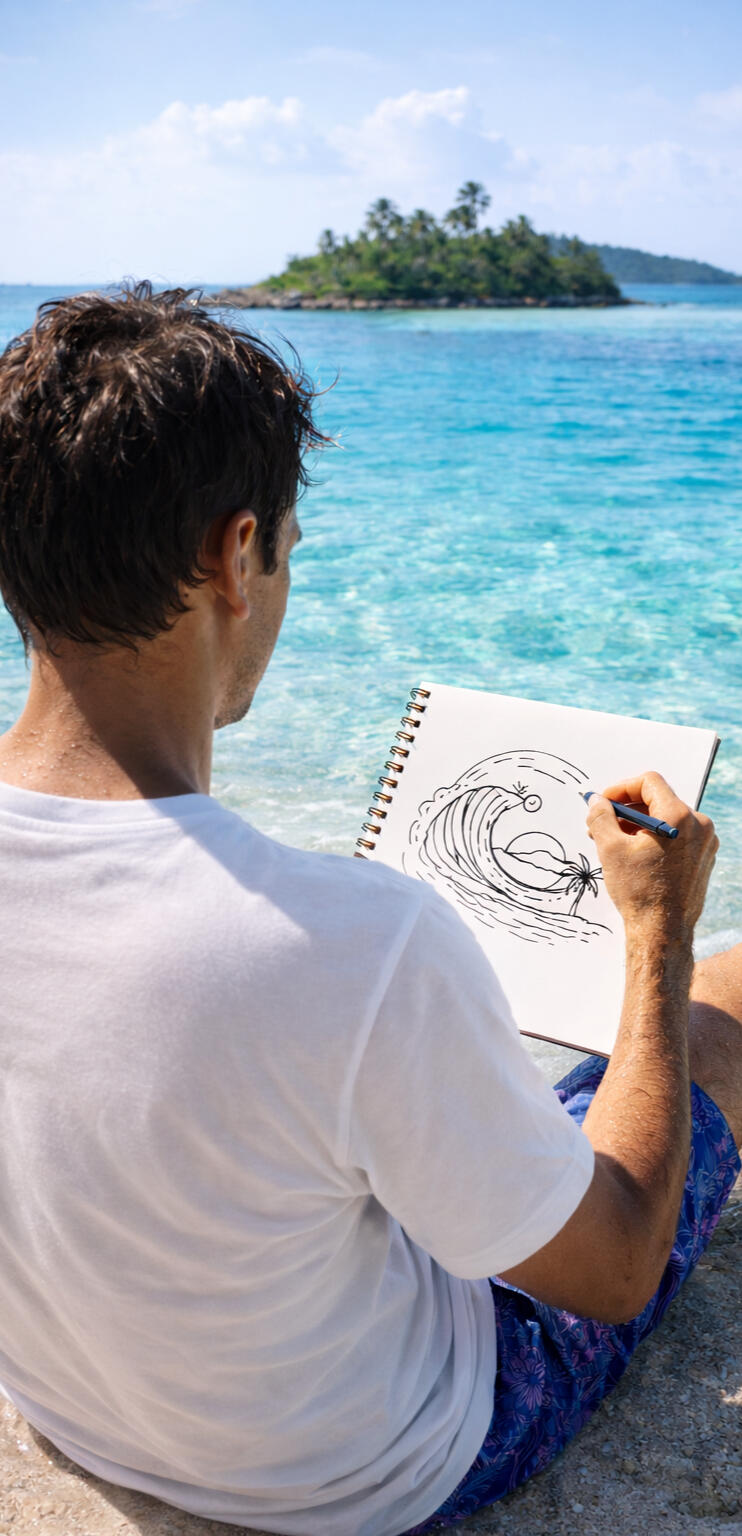 Some people find their rhythm in the noise of the city. Mine has always come from the tide.I'm Dario, the mind (and the hands) behind Oceanline.This project didn't begin in a studio full of screens or strategy charts. It began in quiet places - where the water moves slowly, where ideas arrive with the wind, where a sketchbook fills itself almost without asking.Oceanline grew from that feeling you get when the sea clears your thoughts and everything suddenly makes sense again.Just a designer who kept thinking: If the ocean feels like home...why not create something you can carry with you every day?